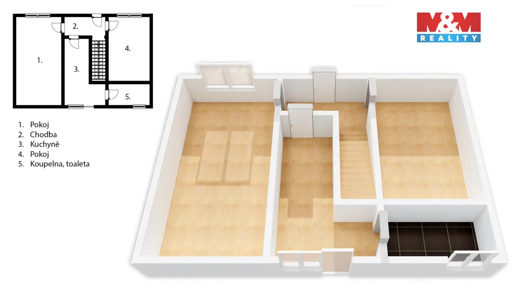Prostorná půda nabízí možnost vybudování dalšího obytného prostoru.