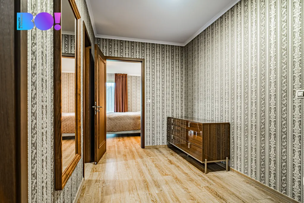 Interiér je postavený na kvalitních materiálech a nadčasovém provedení. Najdete zde masivní dubové schodiště, štukové omítky a praktickou kombinaci laminátových a keramických podlah. Kuchyňská linka značky Noblessa zapadá do konceptu domu, který je navržený pro každodenní rodinný provoz bez kompromisů. O světlo, soukromí i tepelný komfort se starají moderní hliníková okna s exkluzivními venkovními roletami v přízemí a elegantními žaluziemi v patře, včetně možnosti automatizace.
