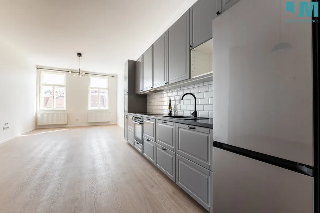 Nabízíme k pronájmu moderní byt 2+kk po kompletní rekonstrukci přímo na Karlově náměstí v Třebíči. Byt má celkovou plochu 58 m² a součástí je také praktická komora o velikosti 3 m².