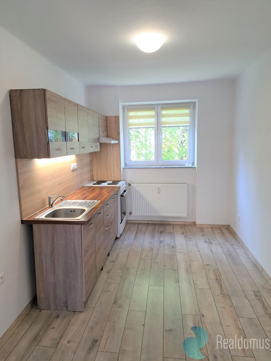 Samotný byt je po kompletní a velmi pěkné rekonstrukci. Je také velmi dobře řešený, vzdušný a slunný. Disponuje prostornou vstupní chodbou. Kuchyní s moderní kuchyňskou linkou. Obývacím pokojem se vstupem na malý balkon a ložnicí. Koupelna je zděná se sprchovým koutem a toaletou. Pokoje jsou neprůchozí. K bytu náleží sklep (8 m2).