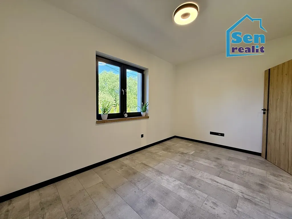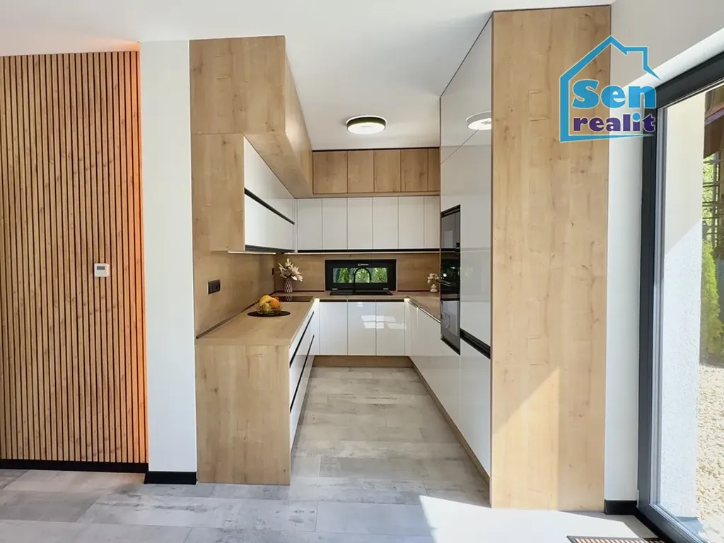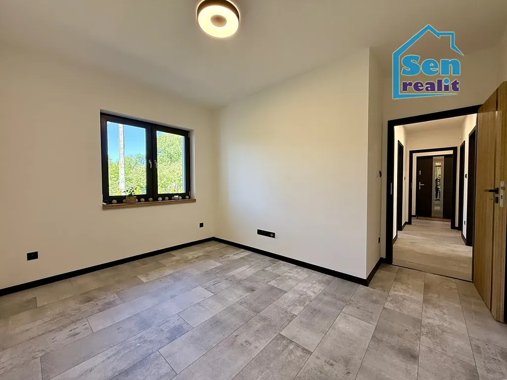 Plovoucí podlahy, stropní světla s možností volby intenzity jasu, dveře v dekoru dřeva, dřevěné parapety