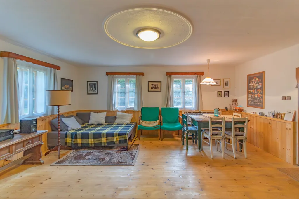 Celý dům se svým původním vybavením, dostatkem prostoru, absolutního klidu a výhledy do okolí působí neobyčejně příjemnou atmosférou. Venkovní sezení před chalupou, je dalším okouzlujícím místem k odpočinku.