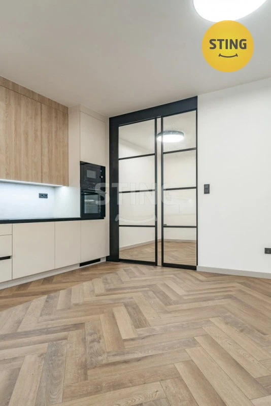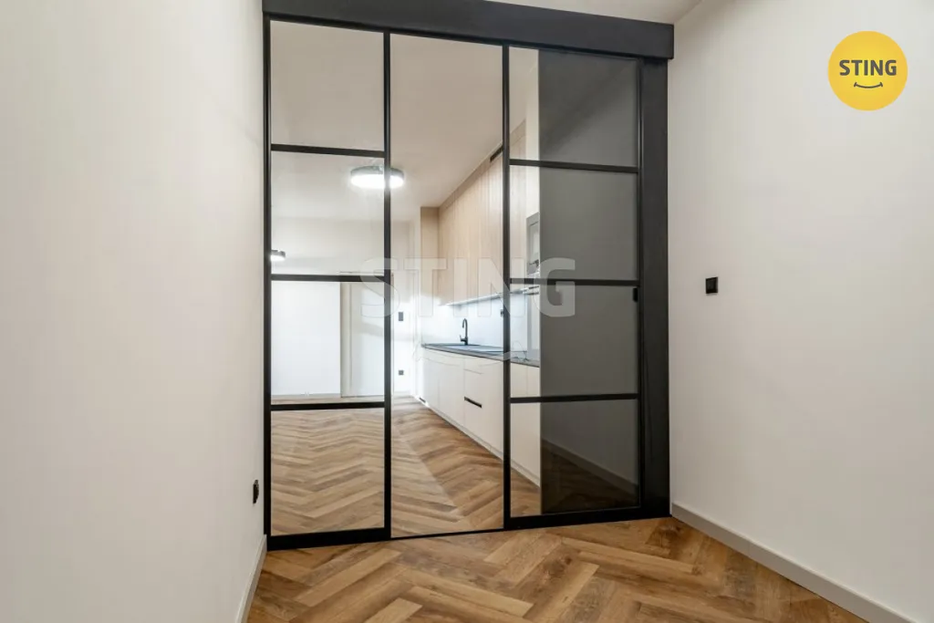 Byt je plně vybavený, připravený k okamžitému nastěhování – stačí jen přinést osobní věci. Nabízí samostatnou ložnici, prostornou koupelnu laděnou v přírodních tónech a kuchyň s moderními spotřebiči, která je připravena na každodenní vaření i příjemné posezení s přáteli. Vestavěné skříně poskytují dostatek úložného prostoru, aniž by narušovaly elegantní vzhled bytu.