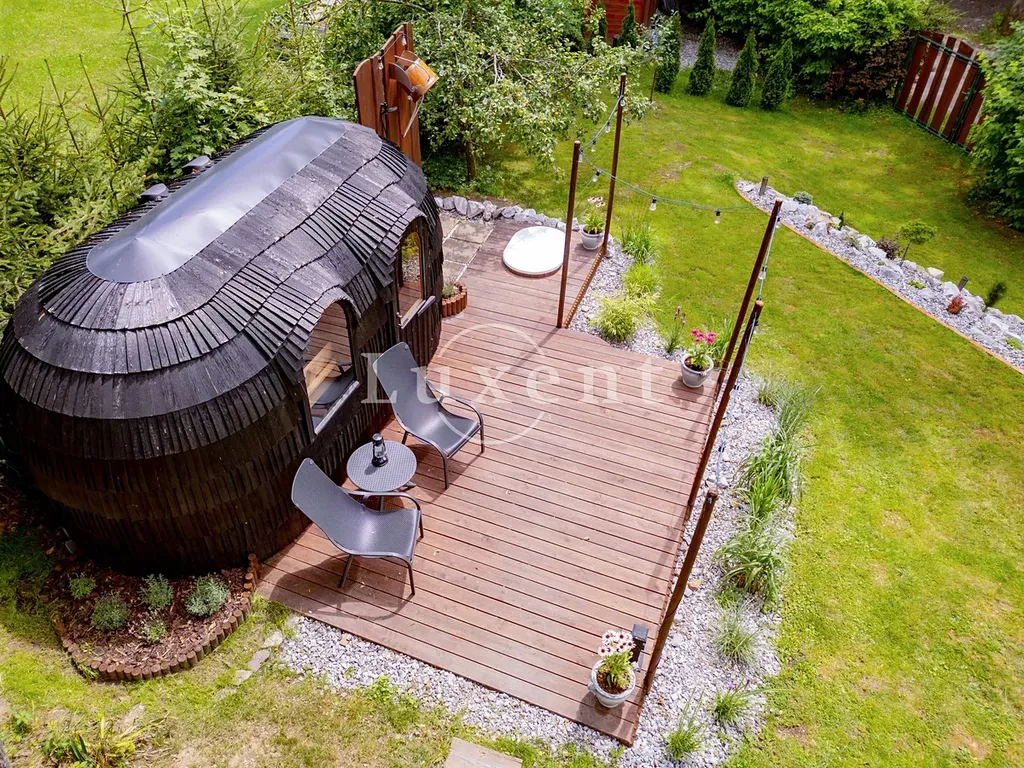 Srub byl postaven v r. 2010 erudovanou firmou a je evidován jako rodinný rekreační objekt. Je usazen uprostřed pozemku ve vyvýšené poloze, což mu dodává vznešený ráz a rozhled ve velmi příjemné okolní krajině. Všechny použité materiály jsou čistě přírodní, z masivního dřeva včetně kuchyně a nábytku. Promyšlená odborně založená a udržovaná zahrada se vzácnými dřevinami a vzrostlými stromy pak nabízí řadu zákoutí s vlastní atmosférou – terasy kolem domu s posezením pro venkovní stolování, špičkovou vířivku, útočiště pod stromy s houpací sítí nebo designovou saunu s posezením, ochlazovací kádí a rustikální sprchou. V intimním prostoru zahrady za domem je kamenná terasa s posezením, grilem a plně vybavenou venkovní kuchyní.