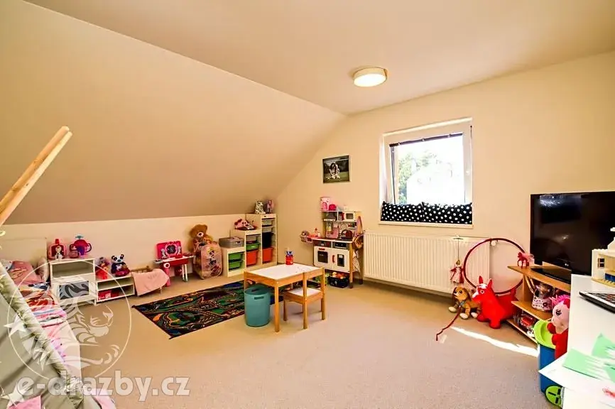 V prvním patře jsou dva dětské pokoje, ložnice a druhá koupelna. I toto patro má přístup na půdu.