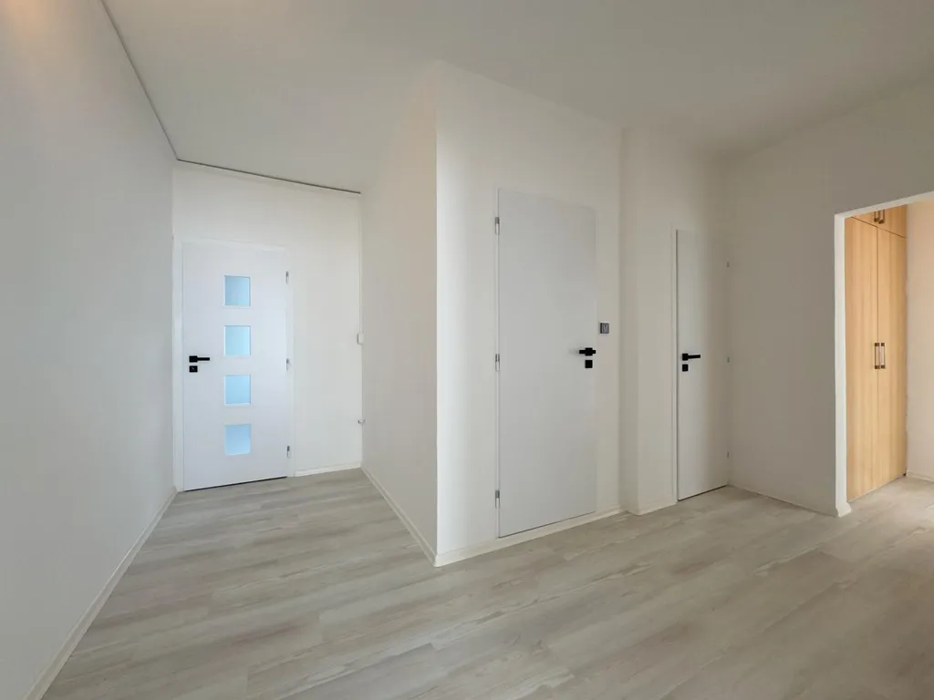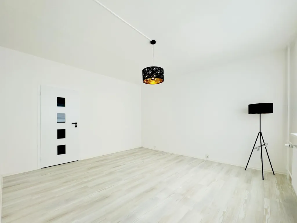 Interiér bytu se pyšní novými podlahami z vinylové krytiny položené na vyrovnávací stěrce, čerstvě vyštukovanými a vymalovanými stěnami. Koupelna je vybavena prostornou vanou, velkým umyvadlem a zrcadlem. Toaleta je oddělená od koupelny a je osazena moderním závěsným WC.