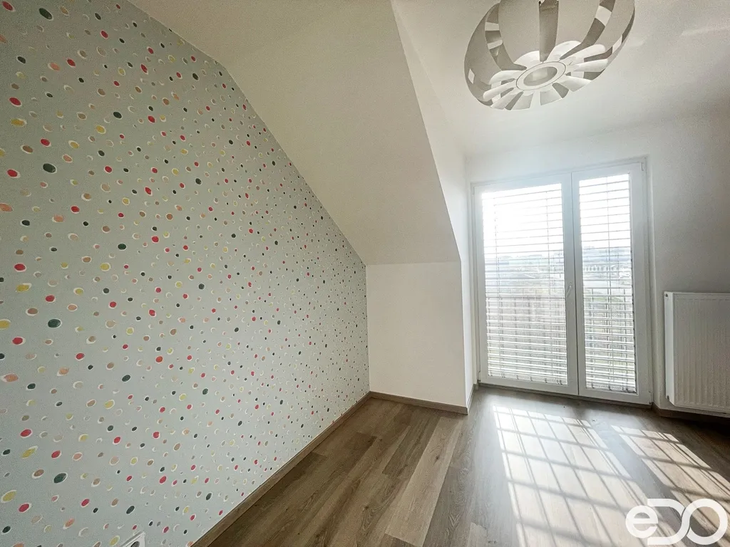 2NP - Koupelna s vanou a sprchovým koutem, dva dětské pokoje, ložnice s velkou šatnou.