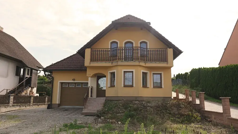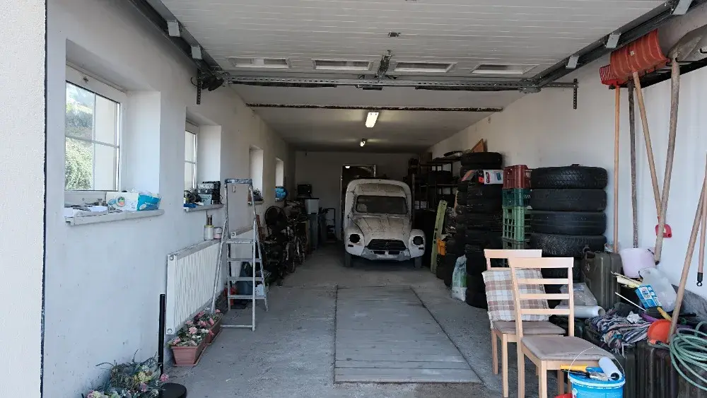 - garáž pro 2 auta, v zadní části za garáží prostory vhodné na vinný sklípek nebo posezení (klenutý sklep)