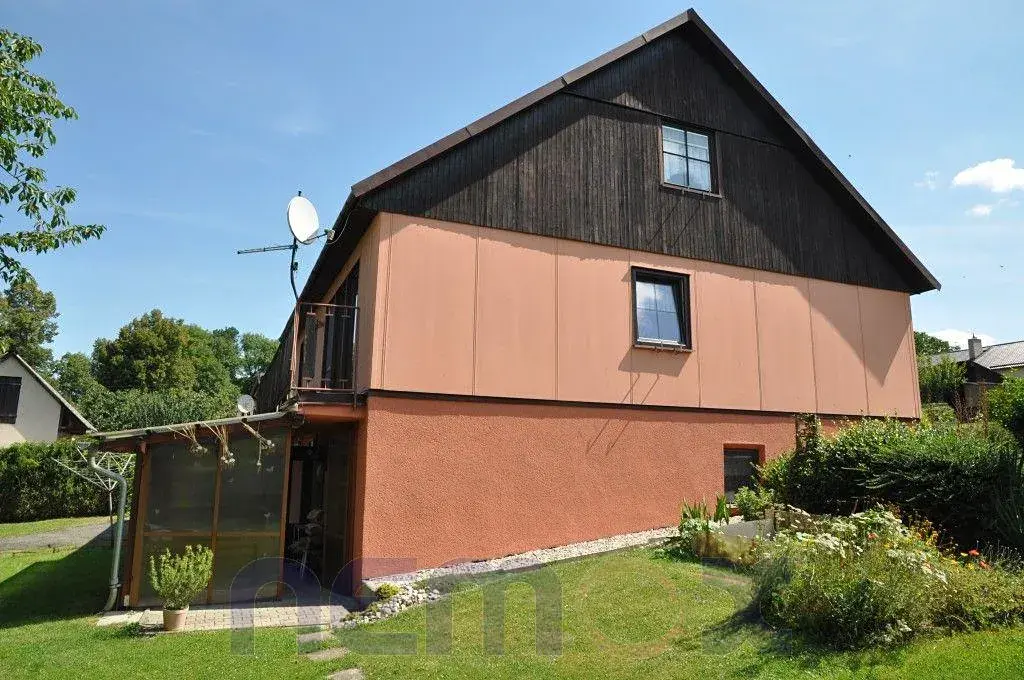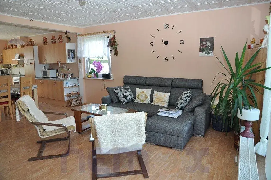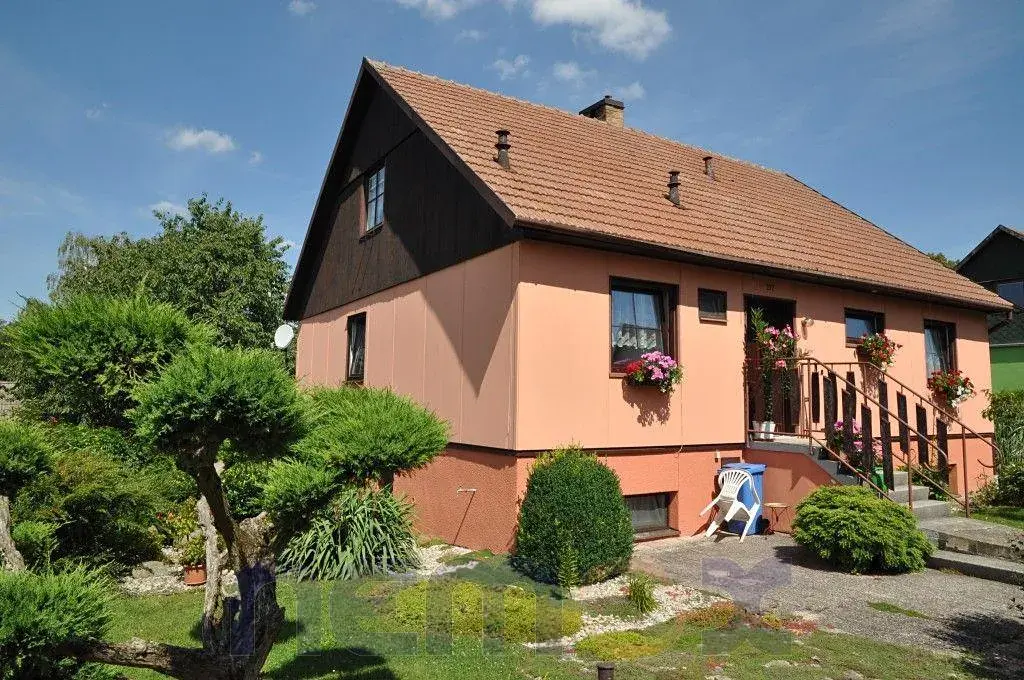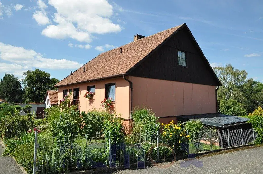 Pěkný udržovaný dům typu Okal se zahrádkou, garáží a pergolou na posezení v Osíku u Litomyšle. V přízemí vás zaujme velký světlý obytný prostor s kuchyní, krbovými kamny a vstupem na balkon.