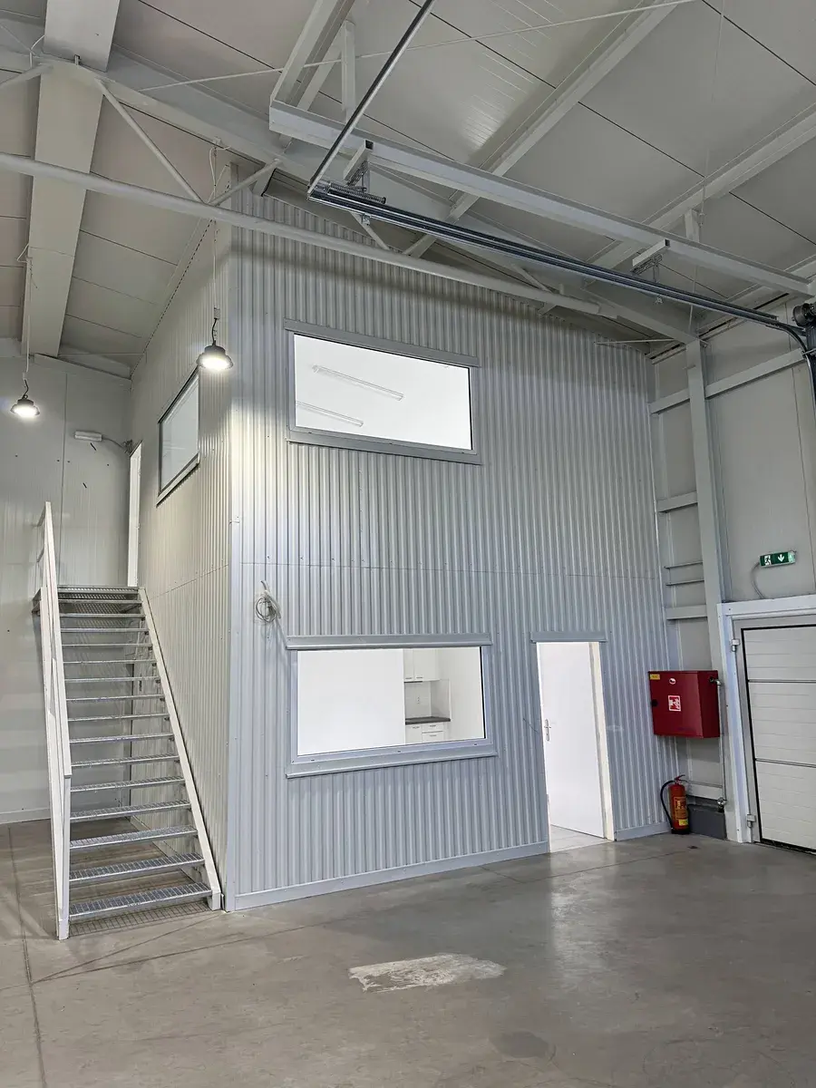 Hala temperována plynovým teplovzdušným agregátem značky Robur a disponuje sekčními vraty HÖRMANN. Vysoká využitelná výška skladu umožnuje umístění regálů v hale, tedy skladování ve více výškových úrovní.