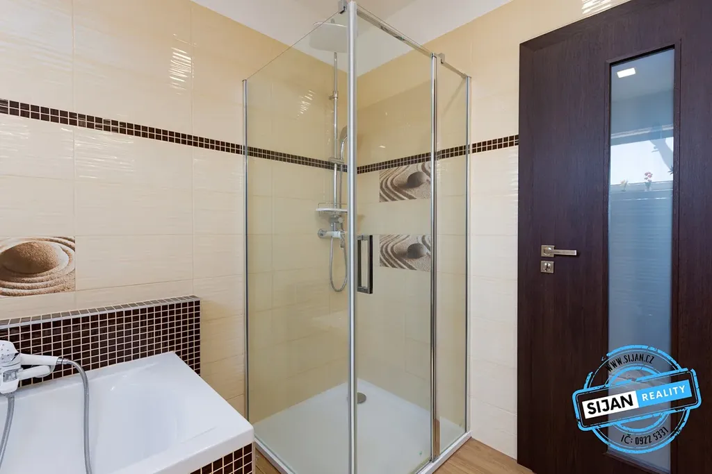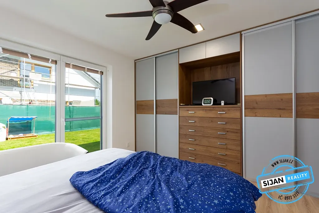 Na udržované zahradě si užijete soukromí i relax – k dispozici je bazén o objemu 20 m³, vyhřívaný tepelným čerpadlem umístěným v garáži. Prostorná terasa s pergolou vybízí k letnímu posezení a rodinným grilovačkám. Samozřejmostí je garáž (32m²) s elektrickými vraty na dálkové ovládání.