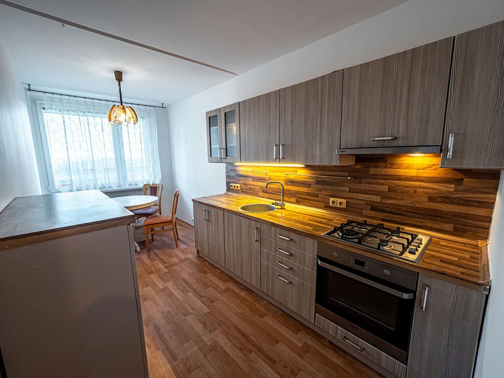 V zastoupení majitele nabízíme do pronájmu byt 3+1 v os. vl. v ul. Josefa Ševčíka v Mostě. Byt o velikosti 68m² se nachází ve 4. patře panelového domu. V kuchyni je novější kuchyňská linka vč. vestavěných spotřebičů, součástí je kuchyňský stůl a židle. V pokojích je položeno lino a celý byt má plastová okna. V obývacím pokoji je lodžie. V prostorné předsíni je původní vestavěná skříň. Koupelna je po rekonstrukci, je zde sprchový kout a umyvadlo. WC je samostatné v původním stavu.