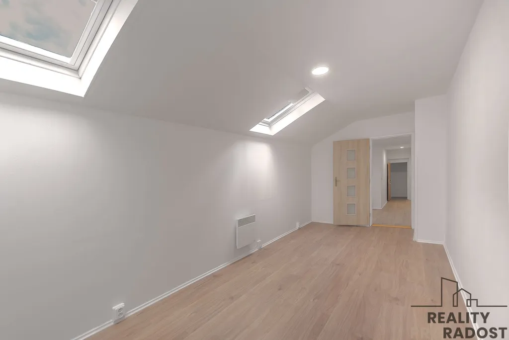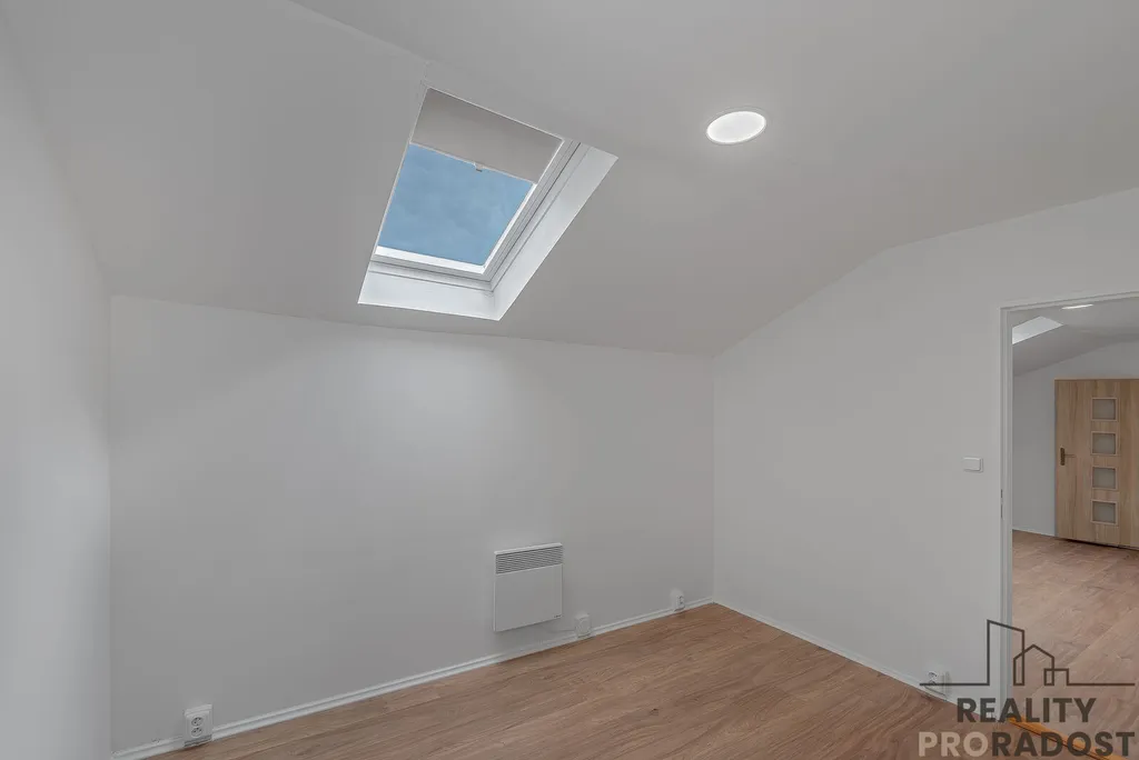 Byt je slunný, vybavený kuchyňskou linkou se samostatným sporákem a s místem pro myčku.