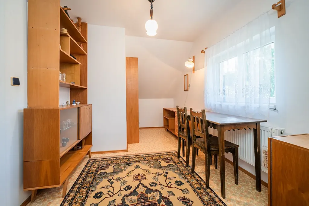 V současnosti je dispozice domu koncipována jako 3 + 1 s možností navýšení počtu obytných místností a změny dispozice prostřednictvím stavební úpravy přízemí domu - podrobné informace v kanceláři.