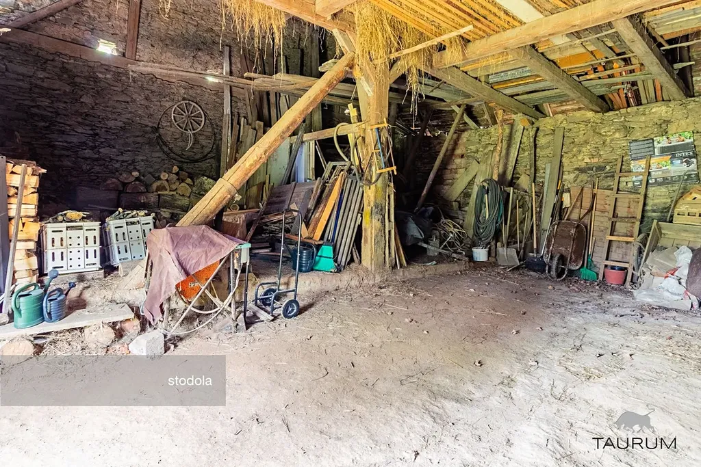 Prostorná chalupa je umístěna na pozemku o celkové rozloze 2210 m² . K dispozici je udržovaná zahrada, dále na pozemku nalezneme velkou stodolu o výměře 124 m² se zavedenou elektřinou (možno využít na uskladnění věcí i jako garáž), samostatný sklep a sad se vzrostlými ovocnými stromy.