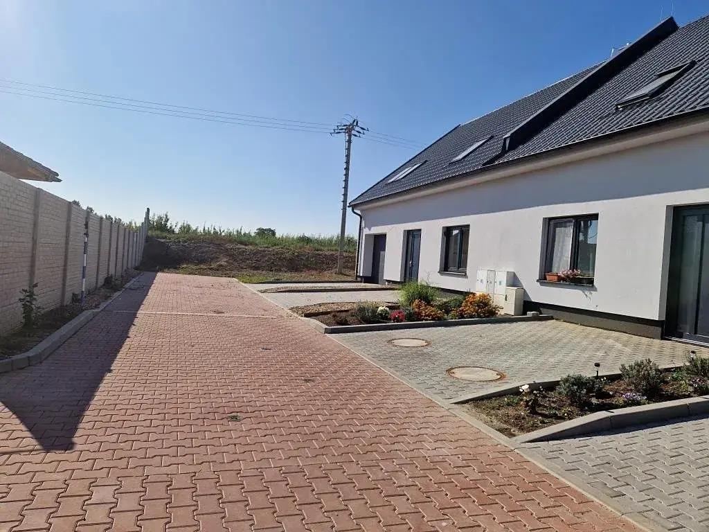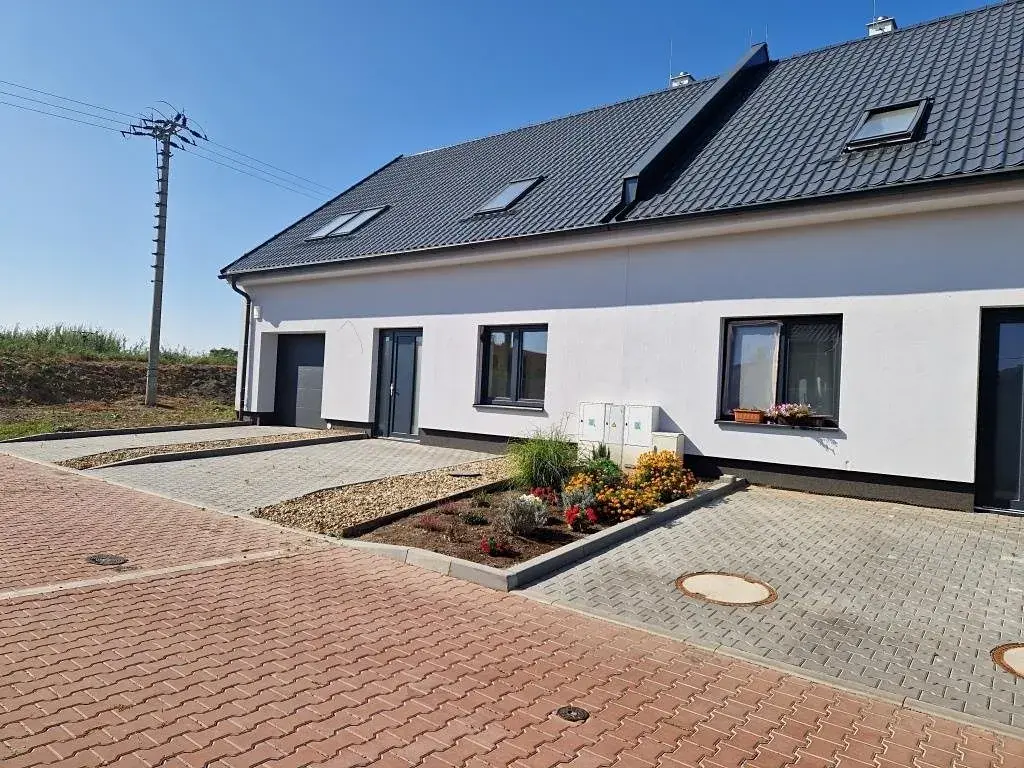 Jedná se o koncový dům v klidné ulici s výhledem na místní zámek, kolaudovaný v dubnu 2023 s možností parkování pro další 3 auta na vlastním pozemku před domem.