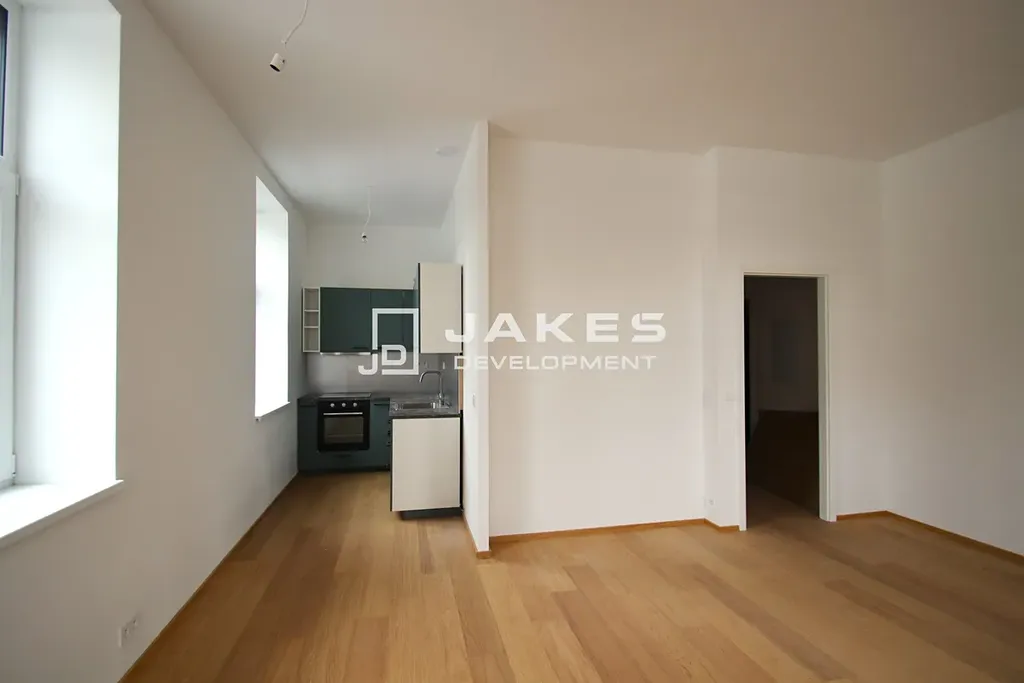 Nabízíme k pronájmu krásný byt 1+kk v novém projektu Strakoschova vila.