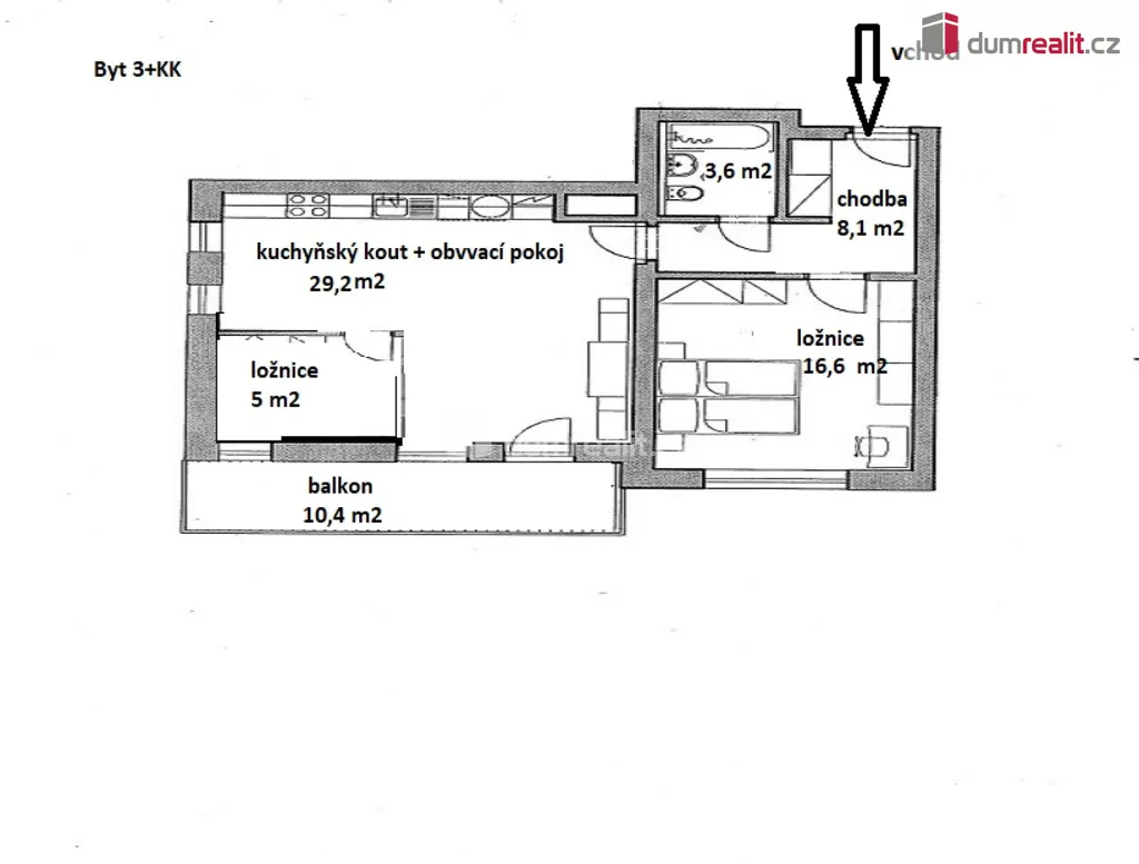 Dumrealit.cz Vám zprostředkuje pronájem bytu 3 + KK, 62 m² +10 m² balkón, v ul. Křižíkova, v Benešově. Bytová jednotka se nachází v cihlovém domě z r. 20210, v 2.NP. Dispozice: ze vstupní chodby je samostatný vstup do ložnice s vestavěnou skříní, koupelny osazené vanou, umyvadlem a WC, dále do obývacího pokoje s kuchyňským koutem se spotřebiči (el. varná deska, el. trouba, digestoř). Z této centrální části bytu je vstup do maličké ložnice a na balkón. Součástí pronájmu je koje (cca 2 m²) a nekryté parkovací stání pro jeden automobil před domem. Měsíční nájemné činí15.000 Kč + 4.213 Kč poplatky. Zálohy na spotřebu elektrické energie si nájemce převede u dodavatele na sebe. Vratná kauce činí 30.000 Kč. Při podpisu nájemní smlouvy je třeba uhradit odměnu RK ve výši jednoho nájemného. Byt bude připravený k pronájmu od 2/2026. Lokalita je klidná, v okolí bytové domy, 10 min. pěší chůze na nádraží BUS, vlak. Benešov poskytuje plnou občanskou vybavenost. Pro více informací, volejte na uvedené telefonní číslo. Ráda Vám byt osobně představím. Ev. číslo: 650275.