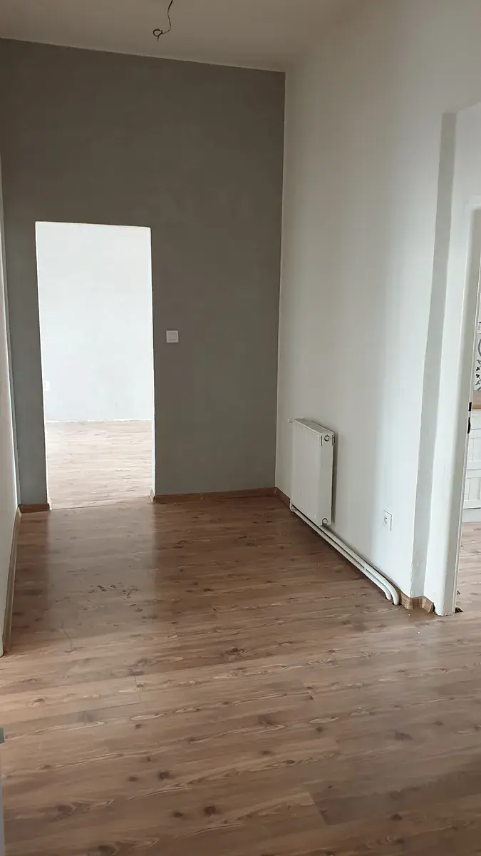 Byt je bez nábytku, pouze kuchyňská linka se sporákem, nový plynový kondenzační kotel. v předsíni a 2 pokojích je oddělená šatna, v nejmenším pokoji spací patro.
