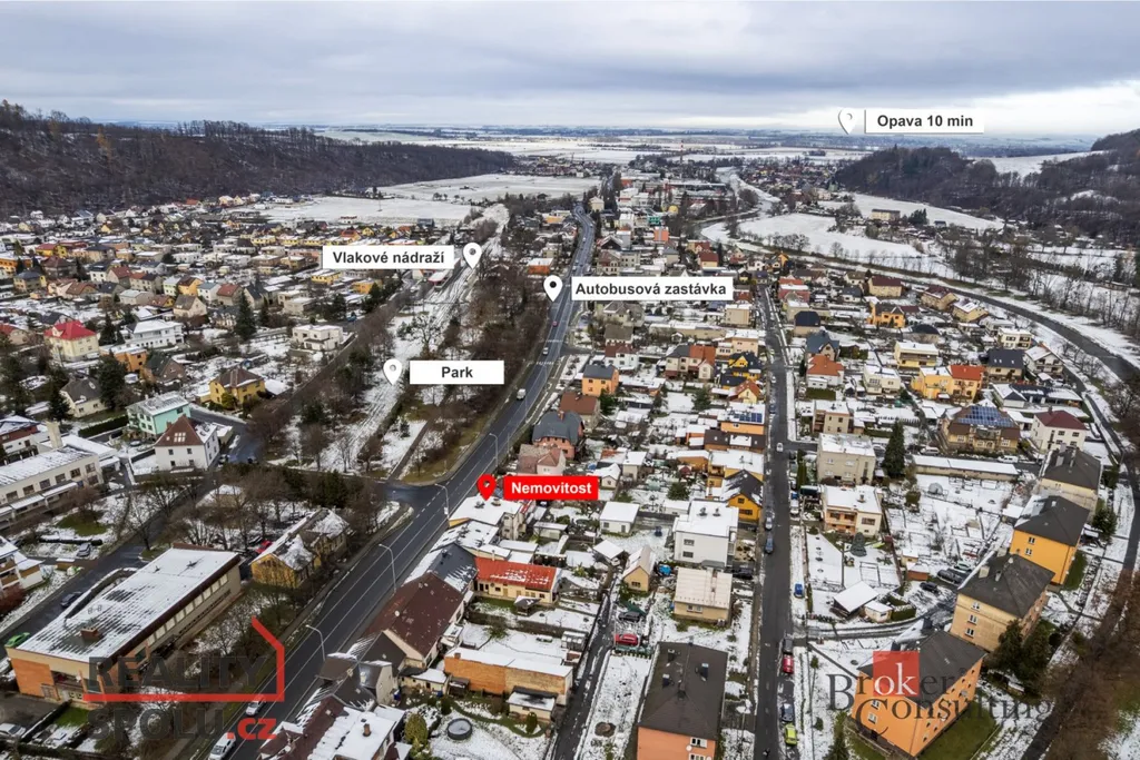 Součástí nabídky je pozemek o výměře 436 m², který nabízí prostor pro zahradu, venkovní posezení nebo menší bazén. V zadní části pozemku je možnost parkování přímo na vlastním pozemku. Dům se nachází na hlavní ulici, což zajišťuje velmi dobrou dostupnost služeb, veřejné dopravy i rychlé spojení do Opavy.
