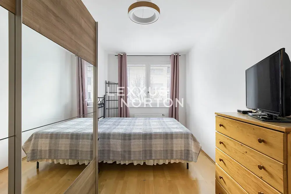 Byt je kompletně zařízený a připravený k nastěhování. K dispozici je koupelna s vanou a pračkou, kuchyňský kout je vybavený myčkou nádobí, troubou, sporákem, lednicí a mrazákem. Součástí obývací části je jídelní souprava, pohovka, konferenční stolek a komoda. V ložnici se nachází postel, šatní skříň, komoda a televizor.