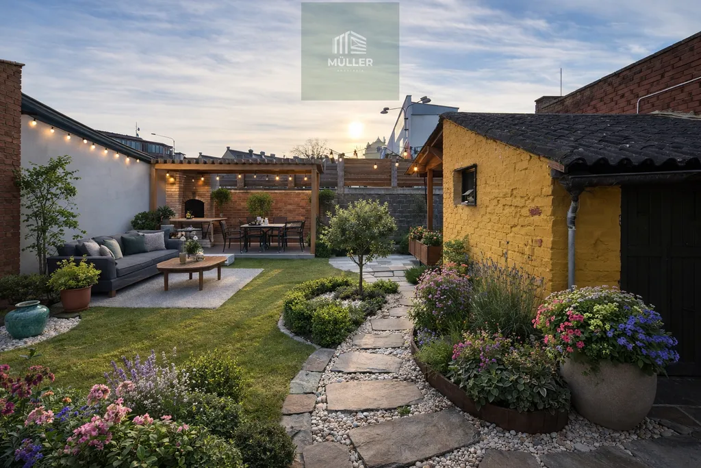 K bytu náleží vlastní zahrada, která poskytuje dostatek soukromí a prostoru pro relaxaci, posezení i rodinné chvíle. Součástí nemovitosti jsou také rozsáhlé sklepní prostory, vhodné například pro vybudování domácí sauny, wellness zázemí či vinotéky, a velkorysý půdní prostor, jenž představuje výrazný rozvojový potenciál.