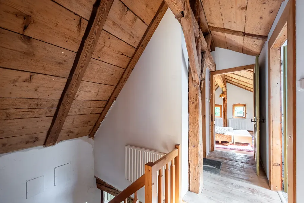 Nabízím ke koupi prostorný a architektonicky jedinečný dům s nezaměnitelnou atmosférou, nacházející se v klidné části obce Běšiny, 7 km od okresního města Klatovy. Dům o dispozici 7+2 je ideální pro ty, kdo touží po domově s příběhem a silným geniem loci – neuchopitelným, ale přítomným v každém detailu.