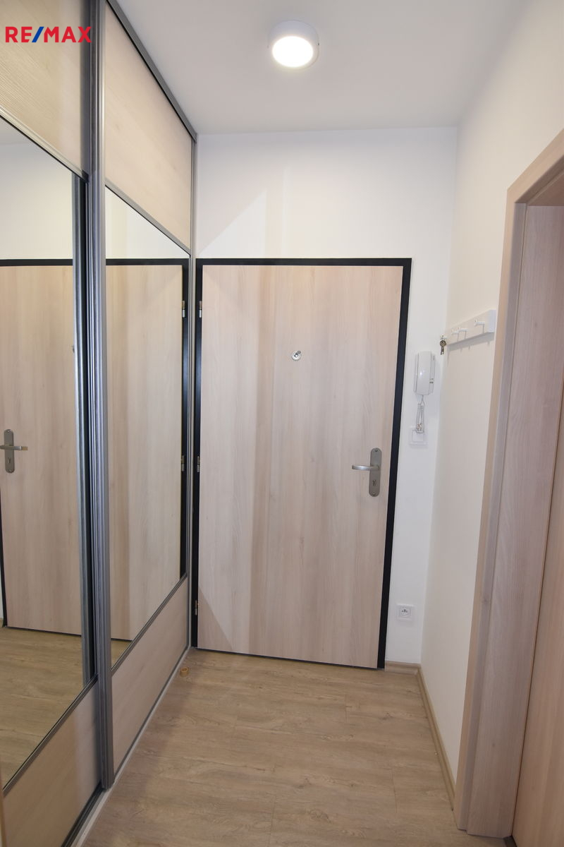 Nabízíme k pronájmu byt v novostavbě 1+kk 32 m2 s balkonem 8 m2 volný začátkem března a vhodný pro jednu až dvě osoby. Do bytu se vchází chodbičkou a po levé straně je koupelna s vanou a WC společně. Do obývacího pokoje s kuchyňským koutem se vchází přímo z chodbičky a byt prosvětluje velké okno se vstupem na balkon. Vybavení bytu - lednice s mrazákem, mikrovlnná trouba, varná konev, pračka, stolek a dvě židličky, skříň. Okna plastová, podlahy vinyl a keramika. V domě jsou dva výtahy. Zálohy na poplatky ve výši 3.000,- Kč/měsíc (dle osob možno upravit), vratná kauce ve výši jednoho nájmu + poplatky a zájemce hradí provizi RK ve výši jednoho nájmu + DPH 21%. Pro další informace a možnost prohlídky, kontaktujte makléřku nabídky.