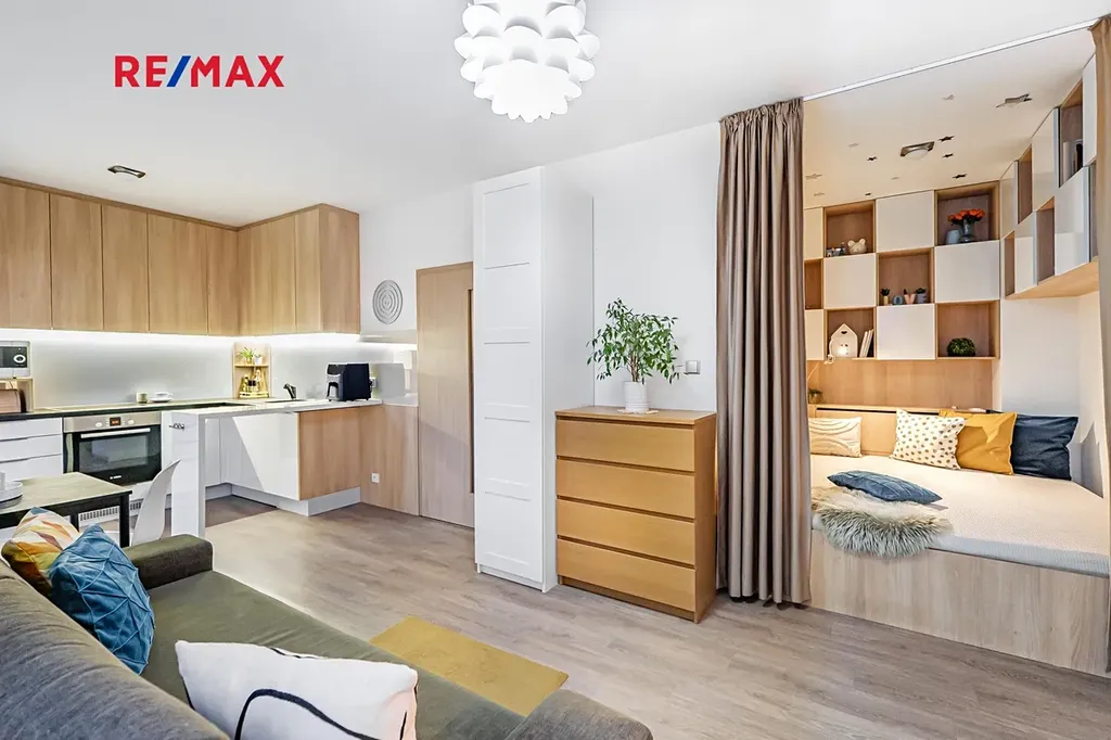 V Padovské ulici v Praze v městské části Horní Měcholupy na Vás čeká nádherný byt o dispozici 1+KK k pronájmu. Podlahová plocha činí 35,6 m². K bytu náleží i lodžie o výměře 8,4 m². Byt se nachází v prvním patře novostavby a pronajímá se tak, jak je zachycen na fotografiích, tj. vybavený.