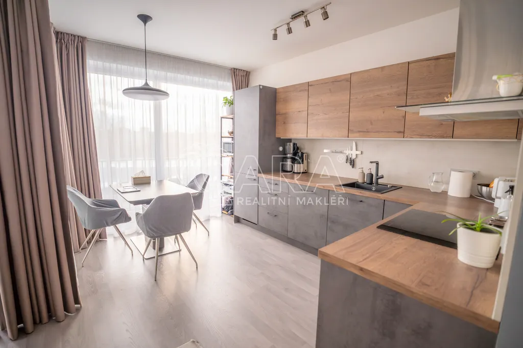 Dovolujeme si Vám nabídnout prodej hezkého bytu 2+kk s lodžii a předzahrádkou, který se nachází v 1.NP moderní novostavby z roku 2021, v rezidenčním projektu Byty na Vackově. Součástí projektu je hezký, uzavřený vnitroblok s altány, stromy a zelení. Byt je v osobním vlastnictví. Plocha bytu je 53,4 m2 + lodžie 10 m2 + předzahrádka 36 m2. Orientace bytu je na východ a jih. K bytu patři sklep. Topení dálkové ústřední. Tento projekt vyniká vysokým standardem vybavení, kvalitní okna s tepelně izolačními trojskly, luxusní koupelna, elegantní design, bezpečnostní dveře. V blízkém okolí veškerá občanská vybavenost. V areálu se nachází obchody Albert, Rossmann, cukrárna, kosmetický salon, prodejna delikatesy a vína, mateřská škola. Dům se nachází v těsné blízkosti parku Židovské pece a jen pár minut od parku Parukářka, ideální místo k procházkám, odpočinku či sportu. Výborná dostupnost MHD, u domu se nachází autobusová zastávka s přímým spojením na metro A – Želivského nebo metro B - Florenc. Byt je vhodný pro vlastní bydlení i jako zajímavá investiční příležitost zajišťující dlouhodobě stabilní výnos. Více informací v RK.