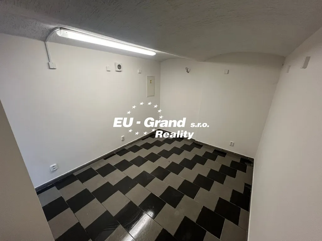 Hlavní otevřený prostor s dostatkem místa pro prodejní či pracovní zónu, sociální zázemí (toaleta + umyvadlo), menší samostatná místnost vhodná jako sklad, kancelář či zázemí.