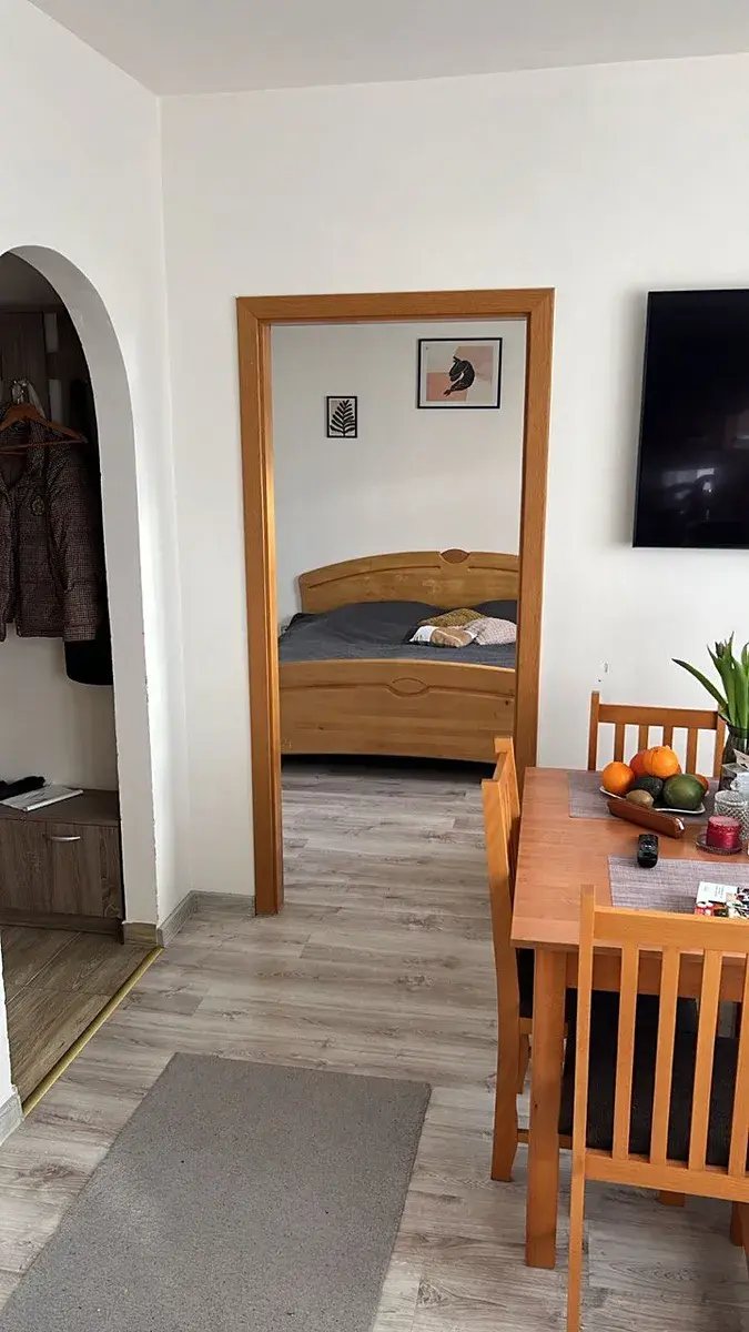 Byt je zařízený. Kuchyň je vybavená kuchyňskou linkou a elektrospotřebiči.