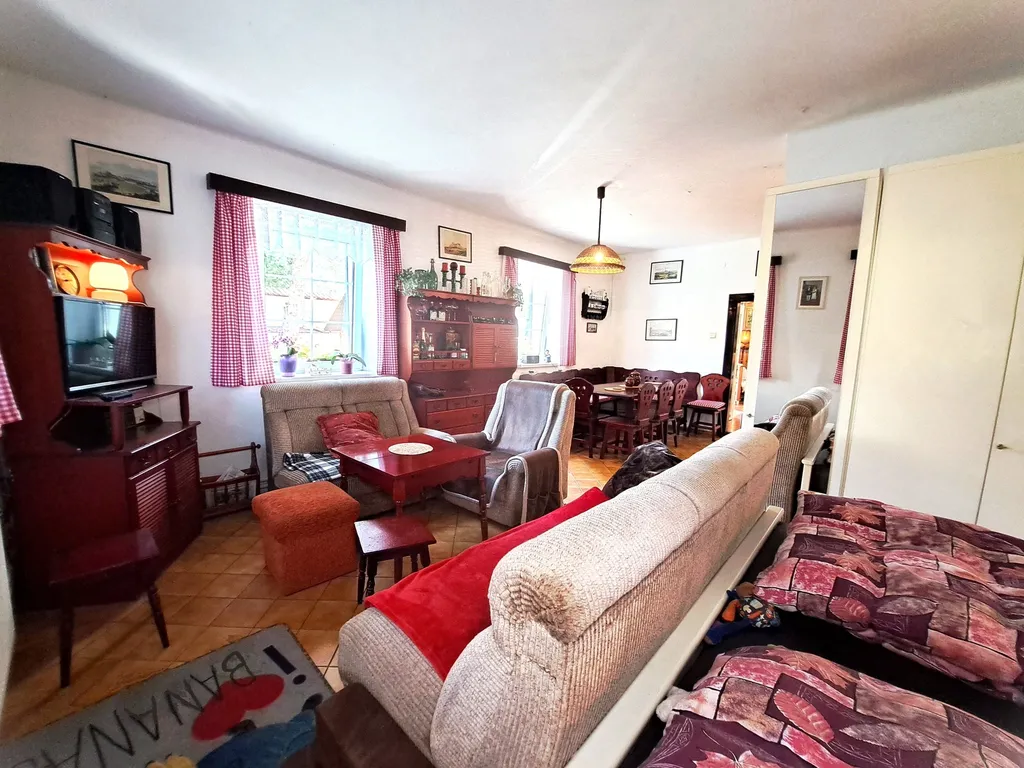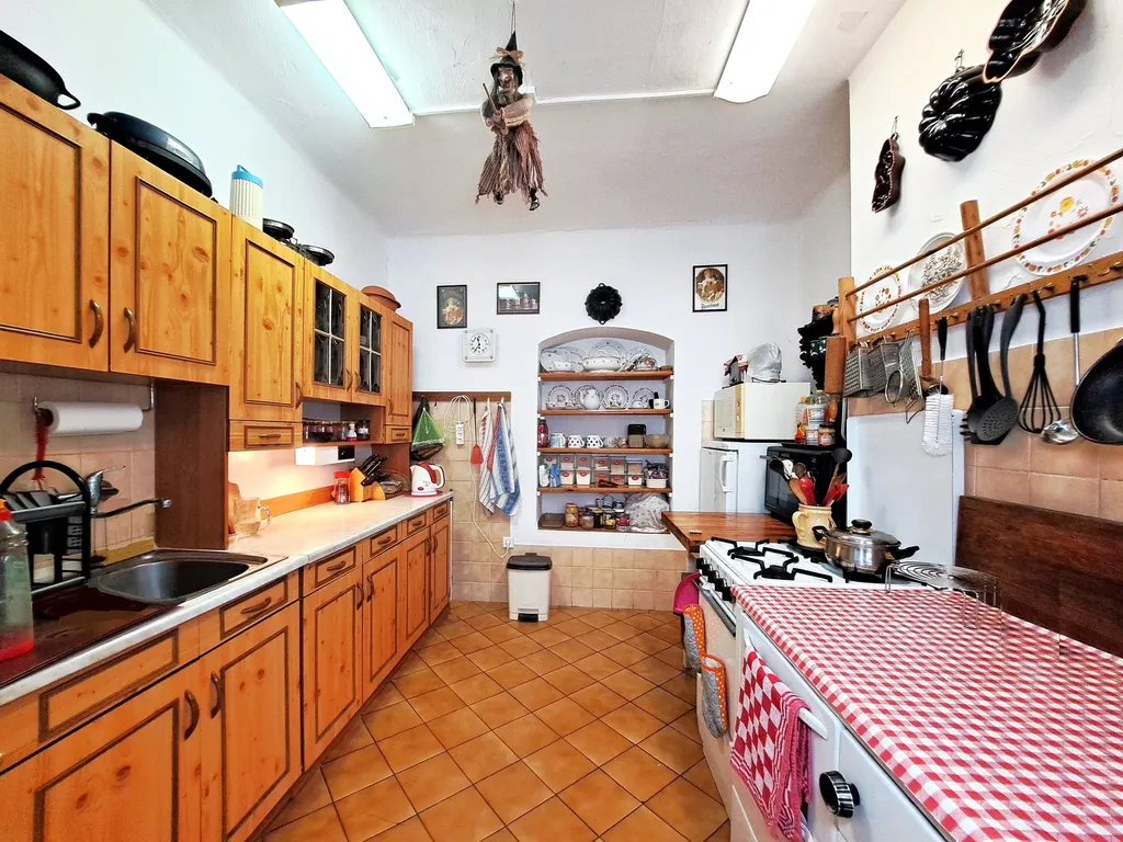 Exkluzivní nabídka velkého rodinného domu v žádané obci Račice u Berounky. Vhodné pro větší rodinu, nebo jako penzion, či pro spojení bydlení a podnikání. Obytný dům má v přízemí halu, kuchyni, dva pokoje (jeden s vl. vstupem), 2x WC a velkou koupelnu. V patře jsou dvě ložnice, každá má samostatnou koupelnu s WC. Ve sklepě je kotel na tuhá paliva a elektrokotel, oba funkční. V kuchyni jsou kromě sporáku klasická kamna na dřevo, tedy i vytápějí, + možnost osazení krbu do jednoho z pokojů: 3-průduchový komín. Velká garáž s oknem a umyvadlem, nad tím půda s možností vytvoření dalších místností. Před domem kryté posezení, vedle domu venkovní gril s posezením, velký bazén. Průjezdná stodola je nyní využívána jako sklad a garáž + pračka připojená na studniční vodu. V zahradě je zděný domek 50 m2 + skleník + záhonky, na většině plochy trávník, vzrostlé jehličnany zajišťují soukromí. Račice patří mezi vyhlášené rekreační oblasti. Dům je 150 m od Berounky i od nádraží, odtud časté spoje do Berouna a dále rychlíkem do Prahy. Pozemek je rovinatý, mimo záplavové území. V obci je restaurace, vodácký stánek s občerstvením u řeky, obchod. Obec zajišťuje svozy autobusem pro děti do školy. Možnost prodeje nemovitosti i s vybavením. Cena včetně právního servisu, optimální hypotéku pomohu zajistit.