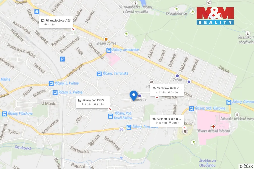 V Říčanech je veškerá občanská vybavenost (kino, bazén, zimní stadion, nemocnice, školy, obchody, restaurace). Pohodlný dojezd do Prahy cca 15 minut po D1, případně vlakem na hlavní nádraží.