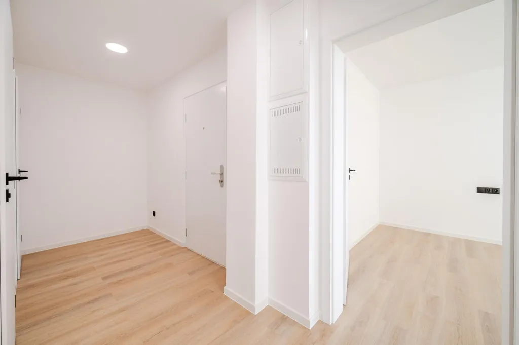 Byt, který vám představujeme, si zaslouží vaši pozornost, je právě dokončen ve vašem požadovém vysokém standardu. Nové jsou veškeré rozvody, podlahy, kuchyně, koupelna, toaleta, interiérové dveře, vstupní bezpečnostní dveře, osvětlení, radiátory, zásuvky, povrchy stěn, sanita, spotřebiče, optické připojení (2000 Mb/s) atd. Byt má velice praktické rozmístění jednotlivých místností. Na celkové ploše 65,8 m2 naleznete 2 ložnice, obývací pokoj s kuchyňským koutem, chodbu s předsíní, koupelnu a samostatnou toaletu. Zasklená lodžie (2,38 m2) navazuje na hlavní ložnici.
