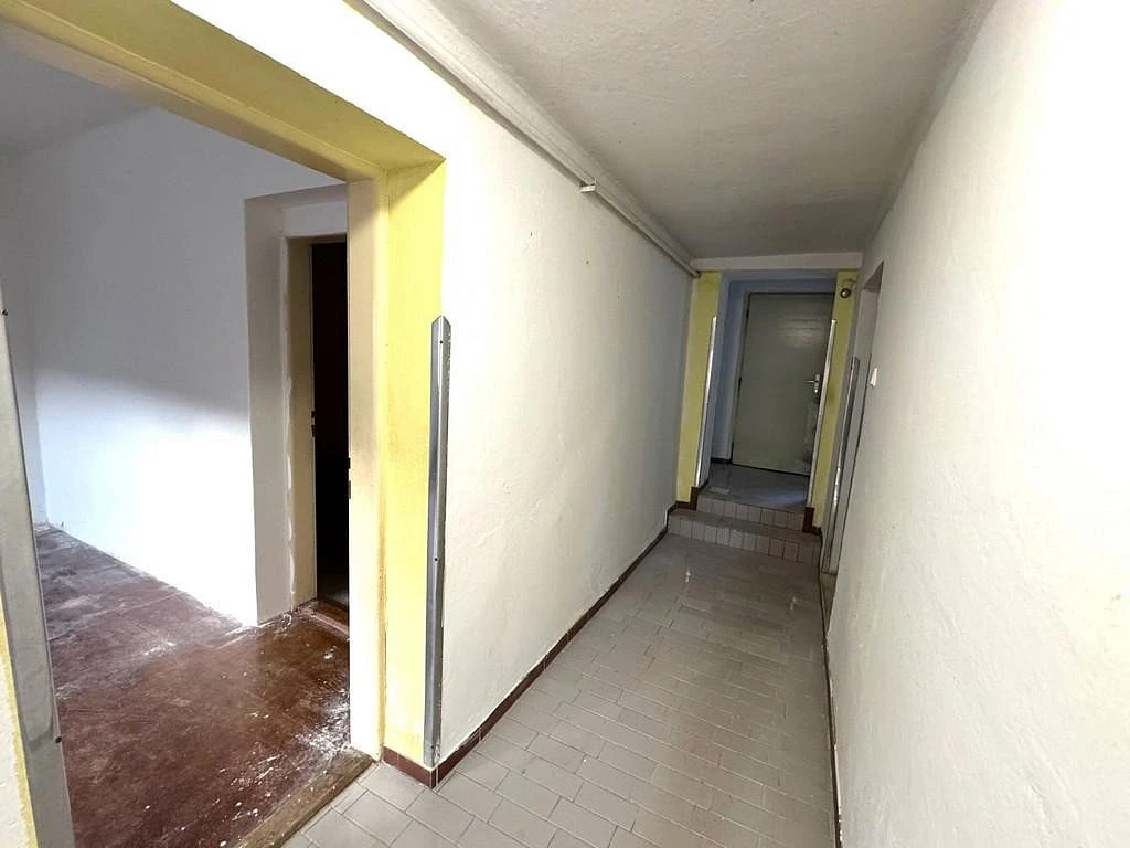 Vstupními dveřmi vejdeme do prostorné chodby o celkové ploše cca 14,2 m², která propojuje hlavní obytné části domu. Po levé straně se nachází pokoj o výměře cca 16,42 m², který může sloužit jako obývací pokoj či ložnice. Z tohoto pokoje je vstup do další místnosti o ploše cca 10,11 m², vhodné jako ložnice, dětský pokoj, šatna nebo pracovna. Z již zmíněné chodby je dále přístup do kuchyně o rozloze cca 9,64 m², kde je zároveň umístěn ohřev teplé vody. Z kuchyně vejdeme do prostorného pokoje o velikosti cca 22,47 m², který lze využít jako hlavní obývací pokoj či další ložnici. Z kuchyně je také přístup do menší místnosti o celkové ploše cca 8,03 m², jež může sloužit jako samostatná jídelna. Z této místnosti je vstup do komory o celkové ploše cca 4,34 m² a zároveň je z ní možné projít zpět do hlavní chodby, což vytváří praktické dispoziční propojení. Chodba pokračuje ke koupelně o celkové ploše cca 4,2 m² a samostatnému WC o celkové ploše cca 1,08 m². Z chodby je vstup na soukromý dvůr, odkud se vchází do jednotlivých nebytových prostor. Z dvoru je přístup na půdu nad domem o výměře cca 68,52m², která přímo vybízí k půdní nástavbě. Nachází se zde komora o rozloze cca 7,55 m², ze které vedou schody do sklepa o celkové ploše cca 5,76 m². Na dvoře jsou dále tři menší nebytové prostory o celkových plochách cca 5,13 m², 4,78 m² a 2,59 m². Ze dvora je po úpravách možné, jak je výše již uvedeno vytvořit místo pro relaxaci a odpočinek.
