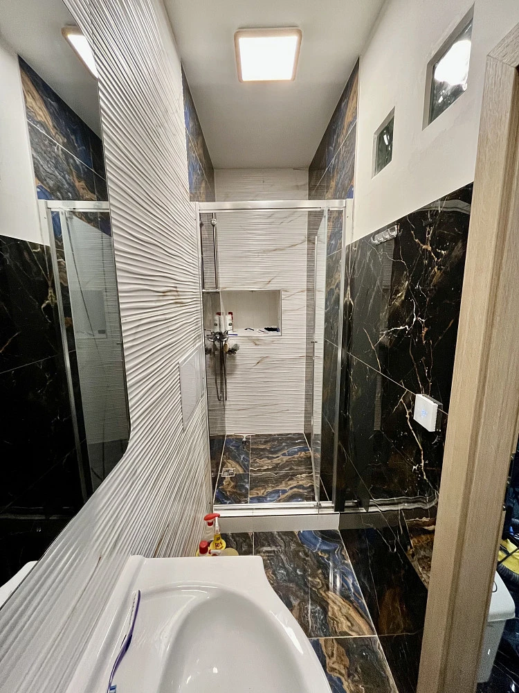 Byt prošel zdařilou rekonstrukcí, která zahrnuje vybudování nové koupelny se sprchovým koutem a WC, novou kuchyní, na stropech byla naistalována stropní deska. Ta má funkci nejen estetickou, ale především zabraňuje unikání tepla a pronikání hluku.
