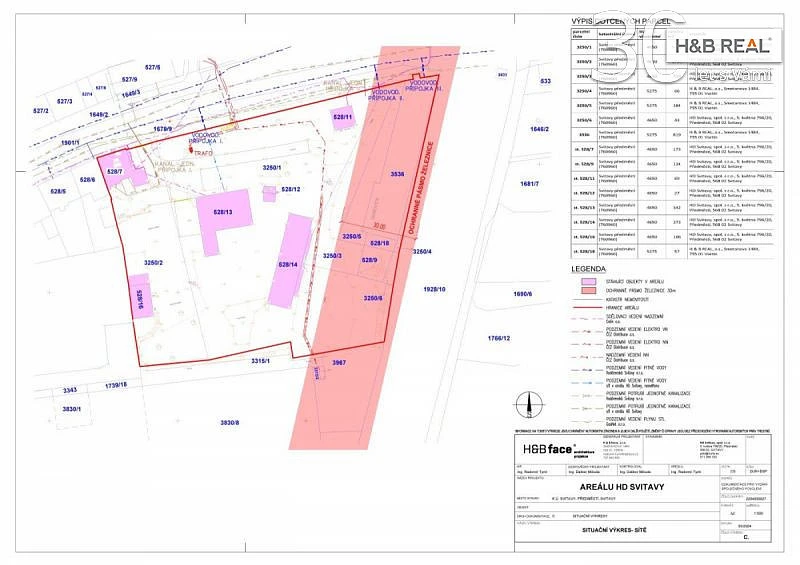 V areálu se nachází několik starších budov, na většinu z nich je zpracovaná dokumentace bouracích prací a byl vydán souhlas s odstraněním staveb. Pro centrální stavbu v areálu je vyřízeno povolení na změnu užívání stavby na prodejně-administrativní budovu. Je zde také vydáno stavební povolení na umístění stanové haly a zpevněných ploch. Výhodou jsou 2 vjezdy do areálu, umožňující plynulou obslužnost celého areálu.