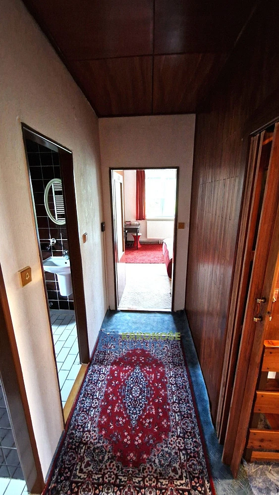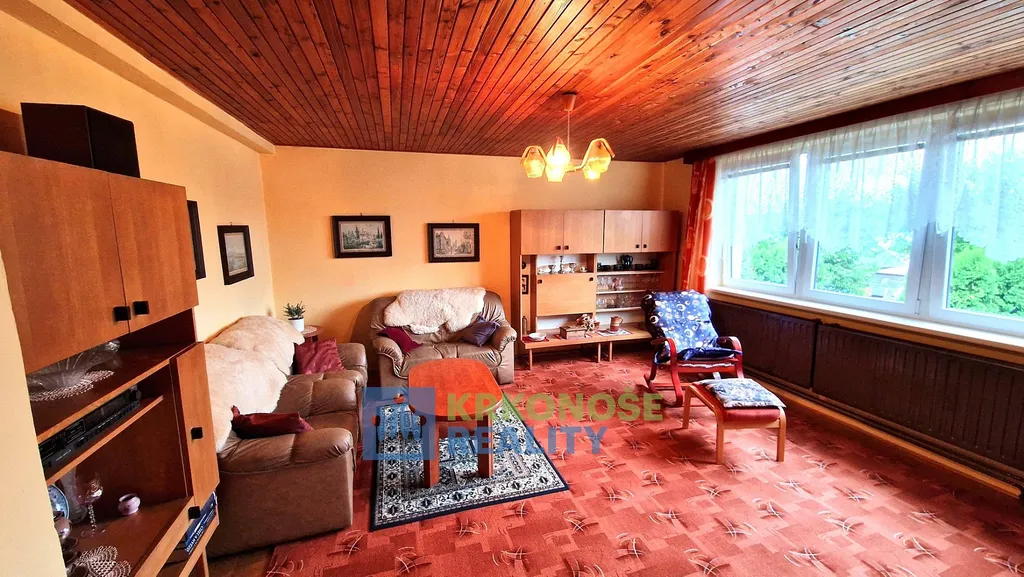 Nabízíme Prodej rodinného domu s hezkou velkou udržovanou okrasnou zahradou o výměře cca 1.100 m² v obci Velké Svatoňovice vzdálené 10 km od Trutnova. Objekt je dvoupodlažní, zčásti podsklepený. Stávající dispozice obytného prostoru je: I. PP – kotelna, sklep. I. NP – předsíň, WC, kuchyň, spíž, obývací pokoj s krbem, a výstupem na venkovní terasu, schodiště do II. NP. V technické části 1. nadzemního podlaží se dále nachází garáž, prádelna s vanou, sklad na potraviny a výstup na zahradu. II. NP – chodba, s výstupem do lodžie, obývací pokoj, 2x dětský pokoj, ložnice, pracovna, šatna, koupelna, WC. Celková podlahová plocha činí cca 170 m². Dům je napojen na veřejný vodovodní i kanalizační řád a elektrorozvodnou síť. Ústřední vytápění – zajištěno tepelným čerpadlem ACOND PRO R, které bylo instalováno v srpnu 2024. K objektu dále přísluší zděná garáž o zastavěné ploše 27 m² a venkovní krb s posezením. Okolo domu je udržovaná zahrada s převážně okrasnými dřevinami. Velmi hezké klidné místo téměř na konci přístupové komunikace. V obci Velké Svatoňovice je školku, základní škola, restaurace, prodejna potravin. Dobré vlakové i autobusové spojení s nejbližším větším městem Trutnov, kde je veškerá potřebná infrastruktura. Dobré vlakové spojení na trati - Trutnov-Praha. Možnost využití k trvalému bydlení nebo rekreaci – v okolí krásná příroda Jestřebích Hor.