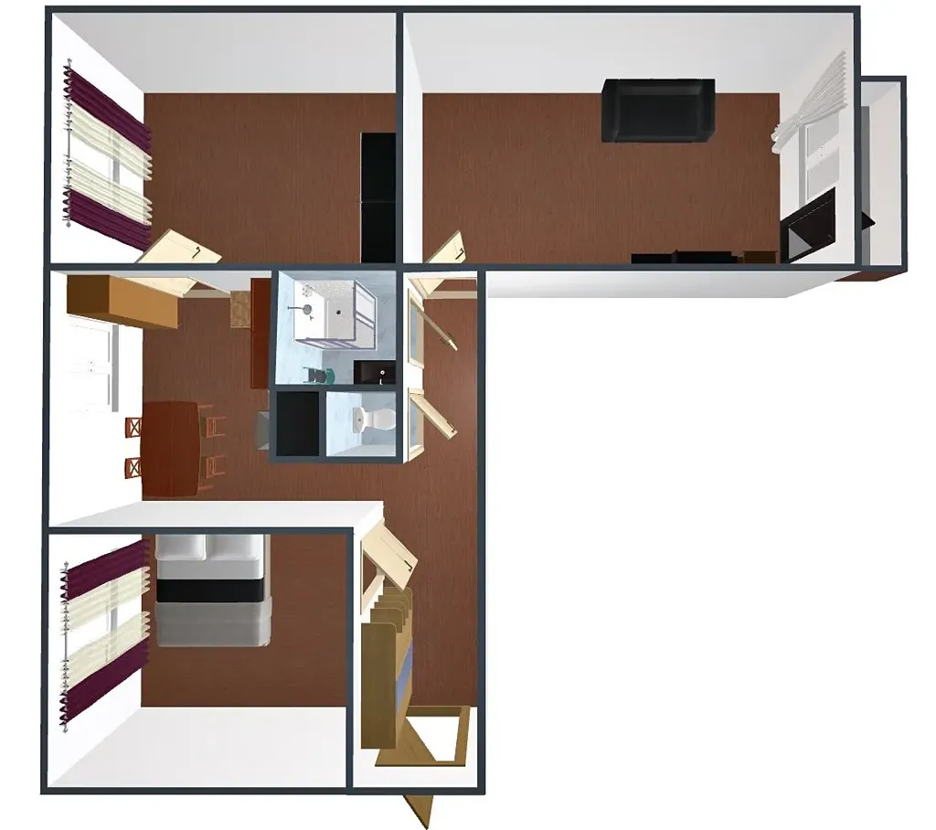 - tři samostatné pokoje - u jednoho z pokojů lodžie