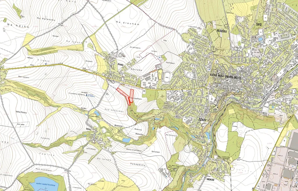 V katastrálním území Kutná Hora, okres Kutná Hora, nabízíme ke koupi spoluvlastnický podíl o velikosti 1/2 na souboru zemědělských a lesních pozemků zapsaných na listech vlastnictví č. 3039 a 14534. Celková výměra těchto pozemků činí 29 394 m², z čehož k prodeji připadá 14 697 m².