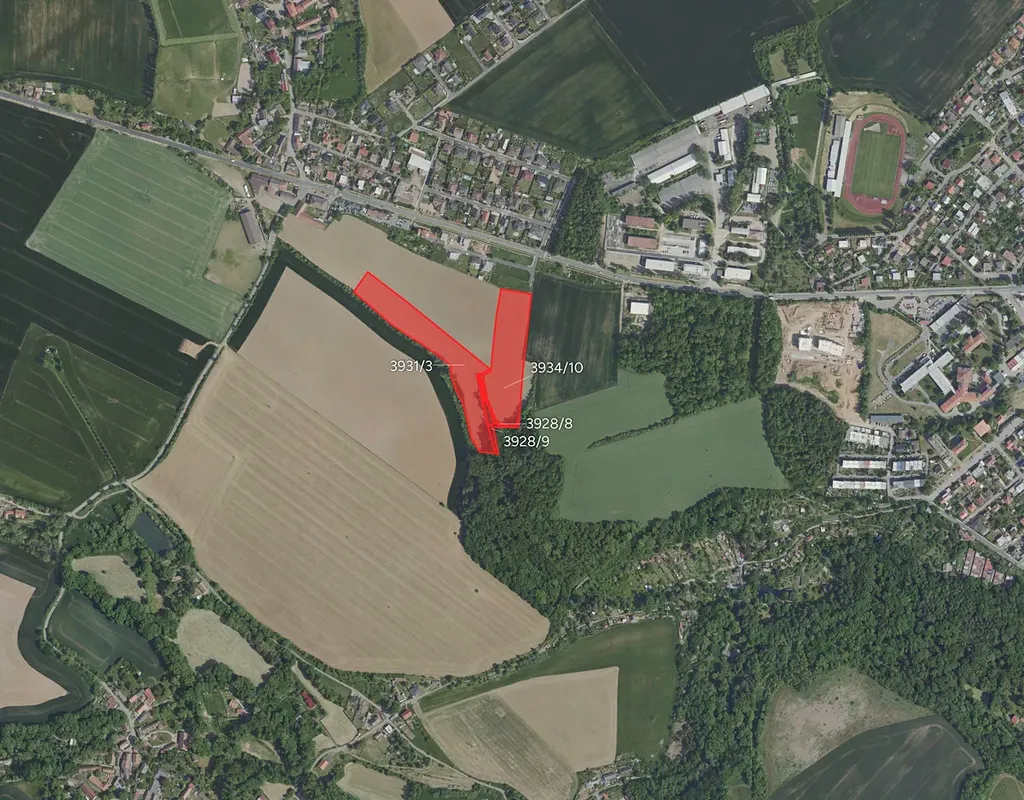 Pozemky jsou vedeny na těchto parcelních číslech: 3928/7, 3928/8, 3928/9, 3930/1, 3930/2, 3930/3, 3930/4, 3930/5, 3930/6, 3931/1, 3931/3, 3931/4, 3934/10.