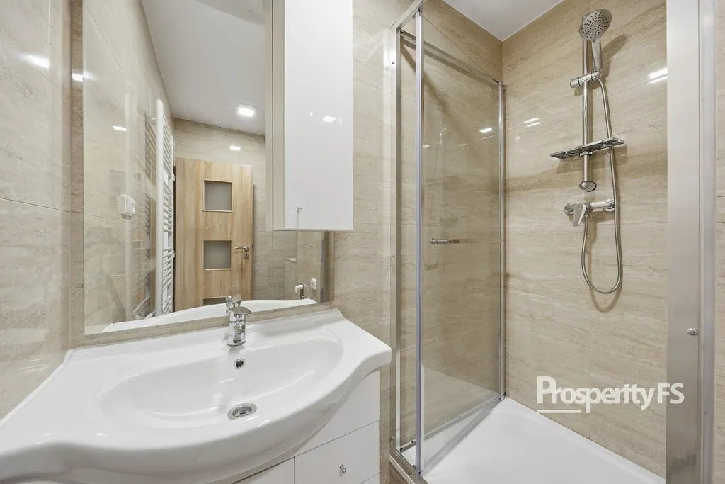Kuchyň i koupelna jsou v moderním provedení. Byt působí světlým a čistým dojmem. Díky své dispozici je vhodný pro jednotlivce nebo pár.