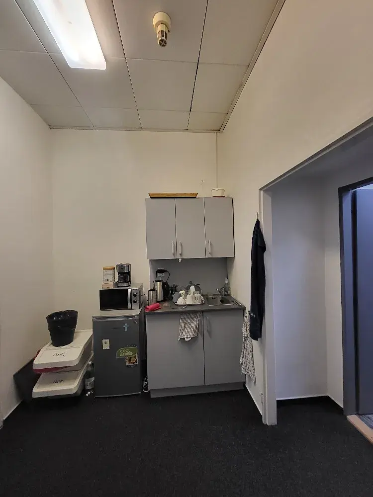Prostor tvoří jedna velká kancelář, jedna menší kancelář a předsíňka s kuchyňskou linkou. Kancelář je vymalovaná na bílo, na podlaze je položen koberec. Vybavení kanceláře není součástí nájmu.