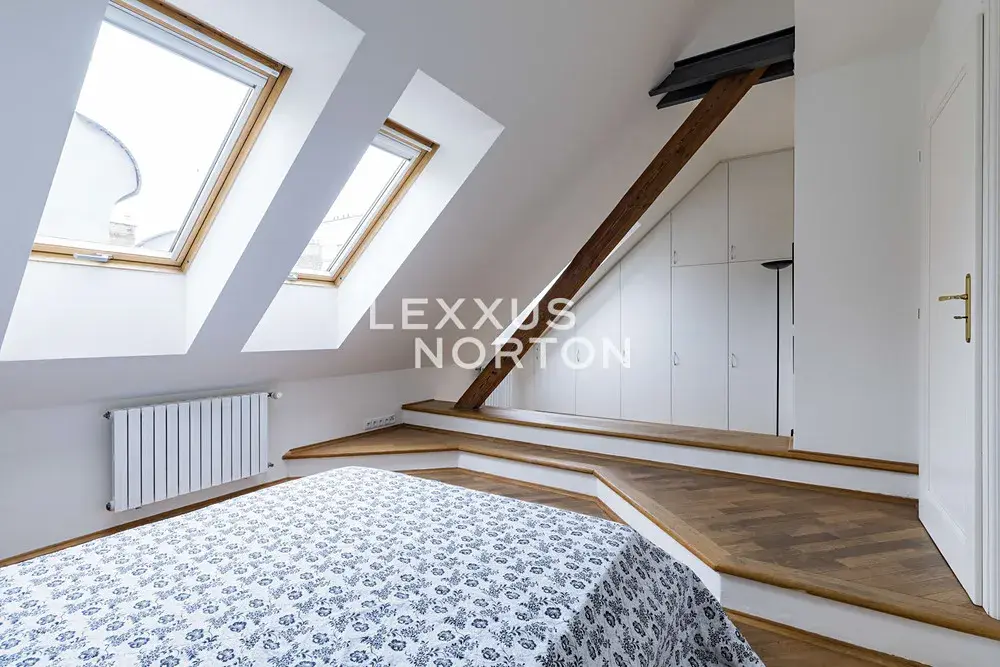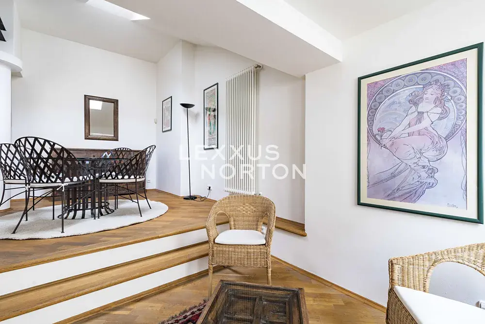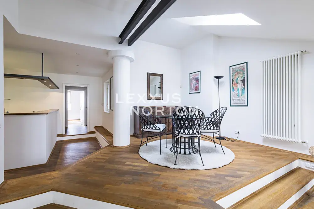 Nabízíme zařízený mezonetový byt 3+1 k pronájmu o velikosti 126 m2 s terasou, situovaný v 6. a 7. nadzemním podlaží domu s výtahem, nacházející se na Praze 2 - Nové Město. Velmi pěkný byt se nachází ve staré zástavbě v centru města, jen pár kroků od Karlova náměstí a Novoměstské radnice.