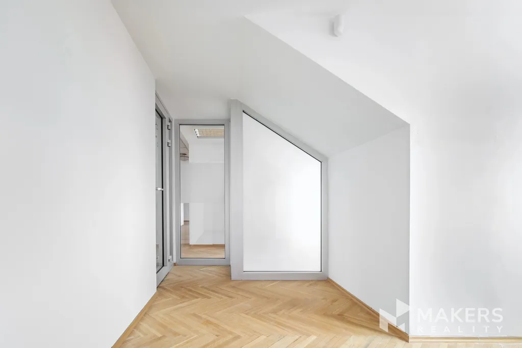 Jedná se o prostory celkovou plochou 130 m2 umístěné v 7.NP na jedné z nejprestižnějších business adres na Praze 1. Protože se jedná o nejvyšší patro, výška stropu je přibližně 2 metry.