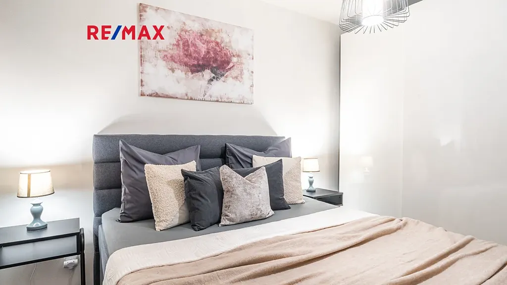 Byt je připraven k okamžitému nastěhování. Součástí vybavení bytu je 65" Smart TV SAMSUNG QE65Q80A, set pračky se sušičkou, tyčový vysavač, moderní úsporná svítidla, interiérové dekorace atd. Kuchyňská linka je v bílém provedení s černými úchytnými lištami, vybavená spotřebiči - pečící el. trouba, indukční varná deska, mikrovlnná trouba, lednice, myčka nádobí, digestoř.