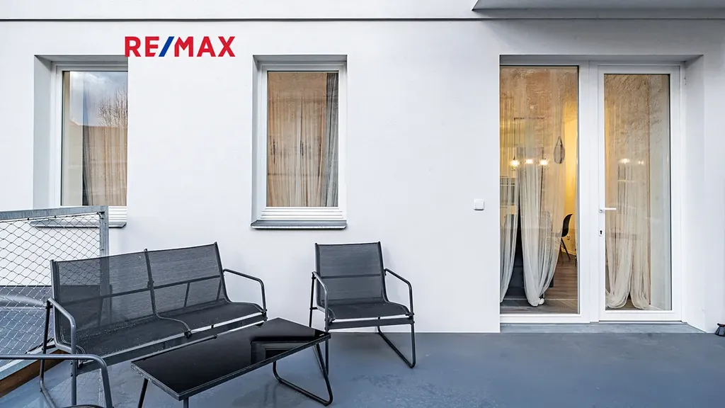 Dům má pouze 7 bytů, tento je v 1.NP a jako jediný má terasu, samozřejmostí je vlastní měření plynu, elektřiny i vody. Dům, ve kterém se byt nachází, prošel celkovou a velmi precizní rekonstrukcí (resp. byl z větší části nově postaven). K bytu náleží vyhrazené, kryté a prostorné parkovací stání pro 1 osobní automobil ve dvoře, do kterého se vjíždí automaticky otevíranými a uzamykatelnými vraty. K dispozici je rovněž sklepní prostor v suterénu domu.