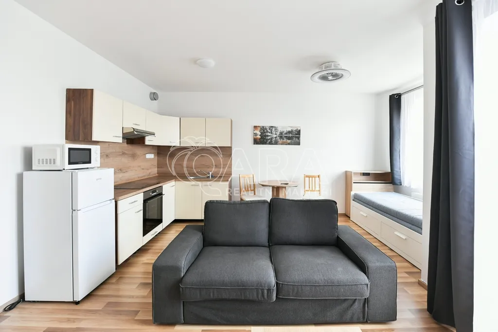 Exkluzivní nabídka pronájmu kompletně zařízeného bytu o dispozici 1+kk s lodžií a parkovacím stáním v oblíbeném projektu Vivus, ul. Karla Guta, Praha 10 - Uhříněves.