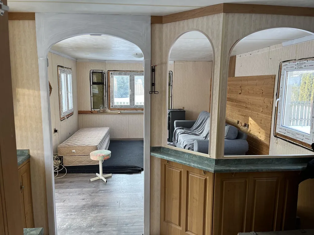 Na pozemku je umístěn zateplený mobilheim o dispozici 2+kk a rozměrech 3,5 × 11 m, který lze využívat k rekreačnímu bydlení nebo jako zázemí během výstavby nového objektu. Dále se zde nachází dřevěná pergola se základovou deskou, dílna a menší dřevěné přístřešky.